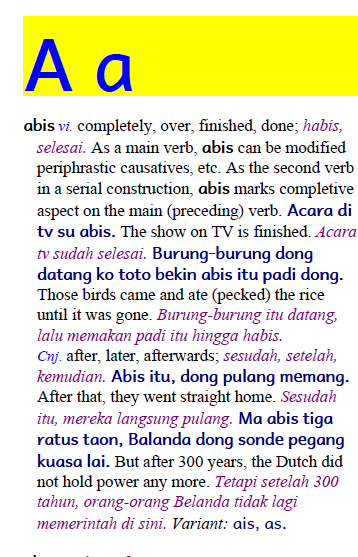 </span></span><span class="Example_Sentence_Vernacular">Acara di tv su abis.</span>