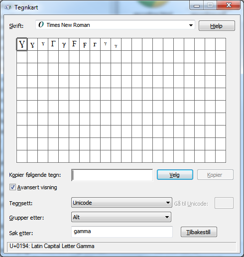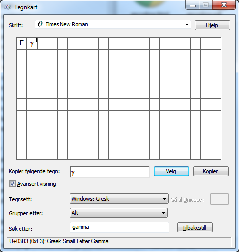 Wed Feb 22 15:02:24 2012: ---- endThe three characters is as the file says, three different versions of the gamma character. I have copied the characters out of windows charmap (Times New Roman font).