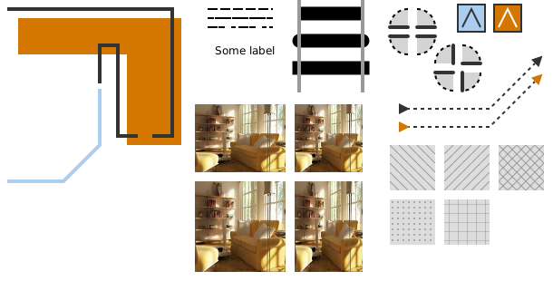 - Cannot use external definitions, I get a warning: svg: use: @xlink:href with value of a local id required. - the external definitions are the orange markers on the dashed line and the orange square (top right)