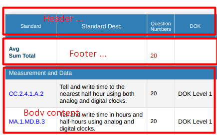 Table header