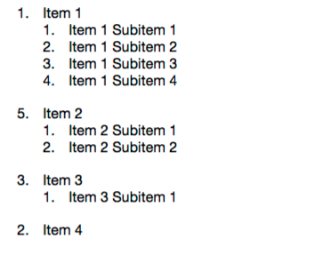 However, PrinceXML only increments the number for each <li>, so nested ordered lists repeat numbers. Is there an option I can set to make Prince number the nested ordered lists the same way current browsers do?