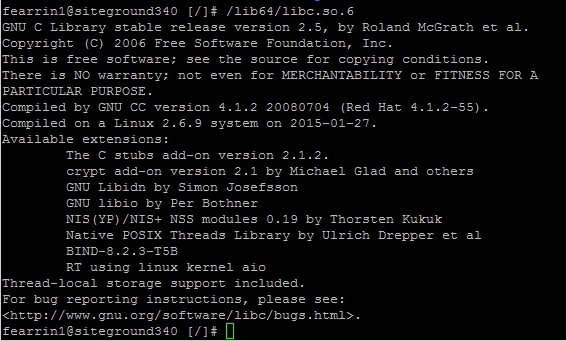 The lsb_release "command not found". There is no /etc/redhat-release directory. Last time I asked they were running CentOS, 6.5 IIRC. I can not install using sudo yum b/c my site is on a shared server and they don't allow changes. I'm a little surprised that they let me browse around outside my home directory, even, e.g., to the /usr and /etc directories. My home directory is /home/fearrin1 and, e.g., my website is in /home/fearrin1/public_html.