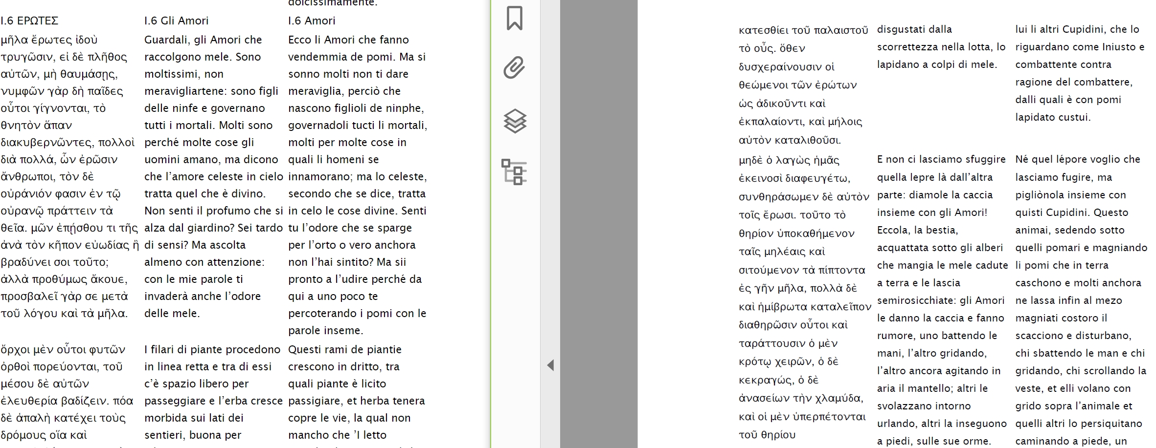 I have a table that compares sections of Greek poetry to their translations, but while online I can see the single lines perfectly aligned, the pdf is not aligned at all.