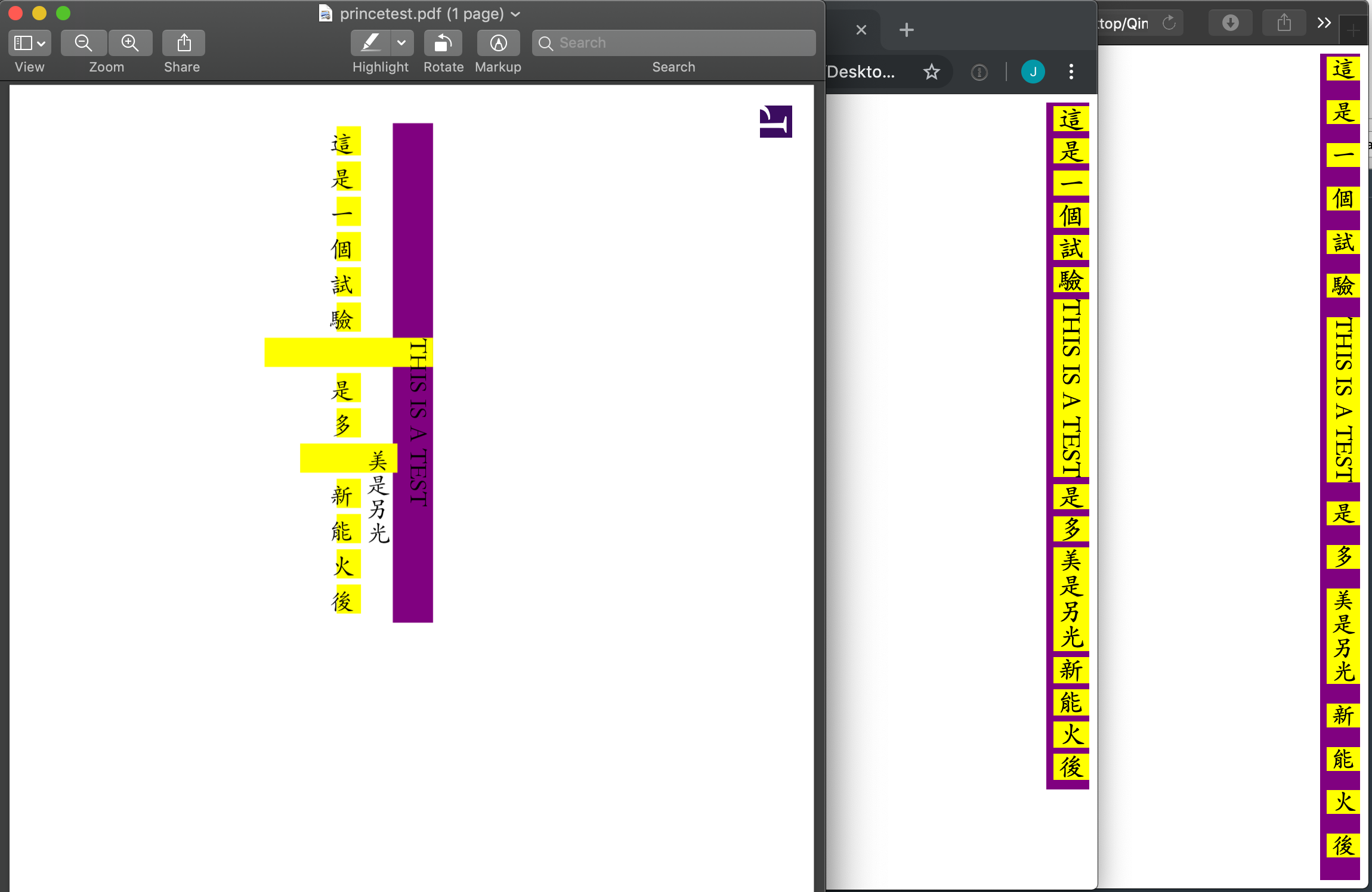 It works well on Safari/Chrome, but Prince seems to be struggling with this.