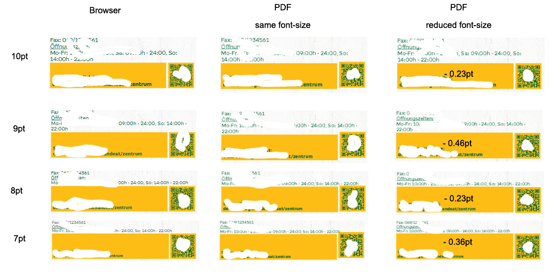 first pdf column is untouch belonging to the font-size, in the second ont you can see how i have to modify the diffenrent font-sizes so it looks like it should.