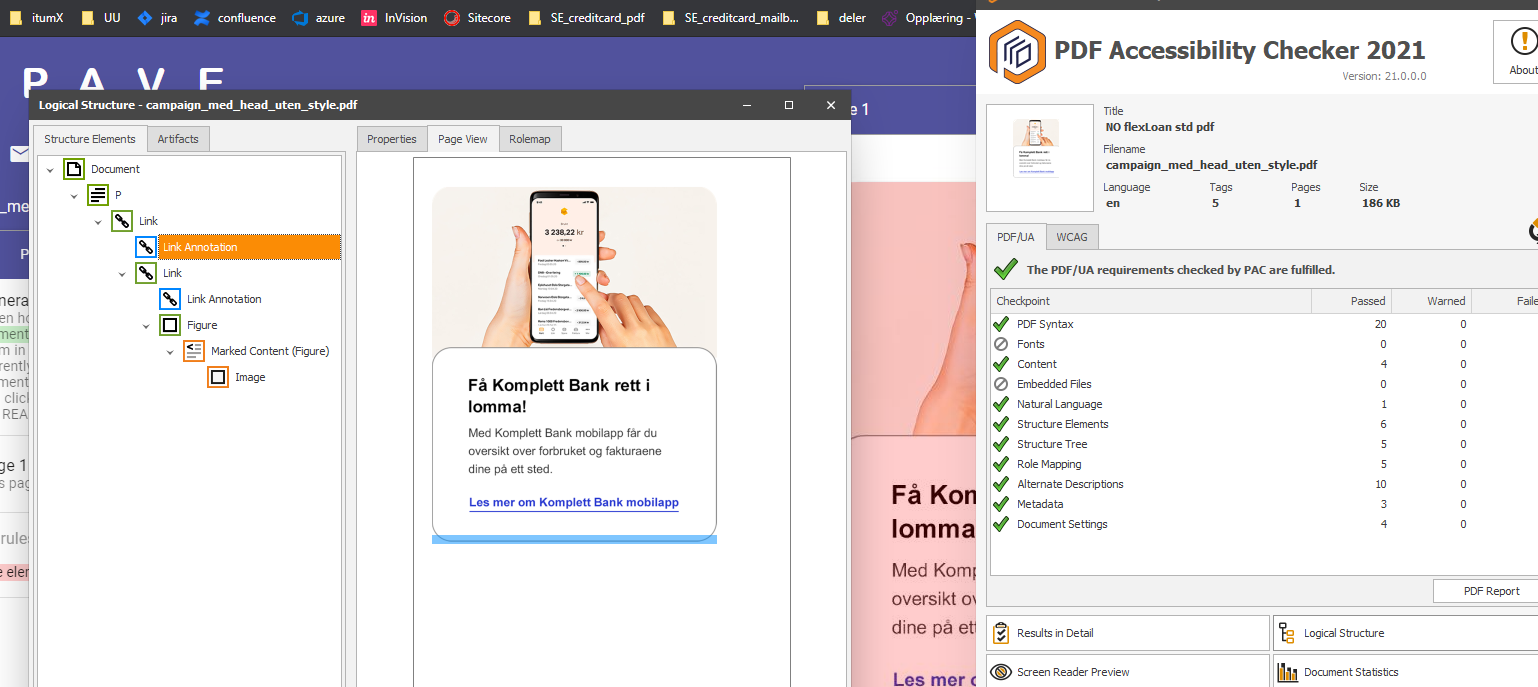 Whenever i generate the PDFs and test them using PAC, PAVE and Adobe acrobat i'm getting theese warnings: innapropiate use of art structure, tables missing header and an image with link.
