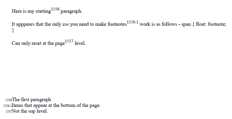 Is there a way to deal with this? Can Prince use the <sup> number or something else to get the current footnote number? Can this be a variable on the span tag we use for our footnotes?