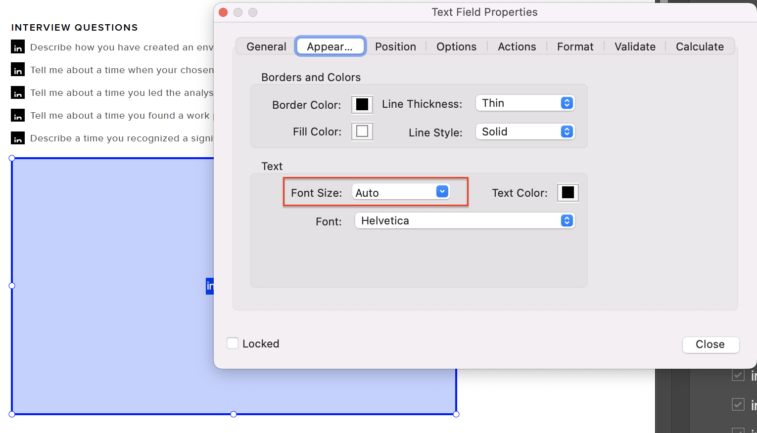 Hi there, I'm evaluating PDF form support in the latest build of Prince. One of the requirements we have is to be able to set textarea font size to Auto (see attached screenshot). This will allow PDF users to see all the text entered in the printed version. I was able to set a fixed font size, but I could not figure out how to force the Auto setting. Is there a way to force this setting on PDF form with Prince? This is very important to us, and any help will be highly appreciated.