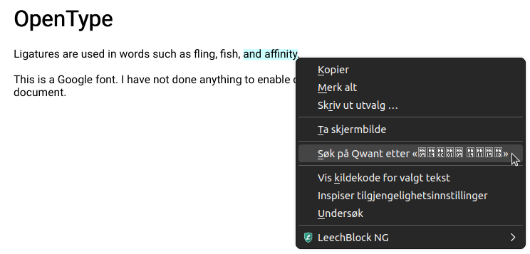 PS: even the succesful conversion to HTML leaves some slightly corrupted text where ligatures occur: "fling, fish, and affinity" becomes "$ing, #sh, and a%nity"