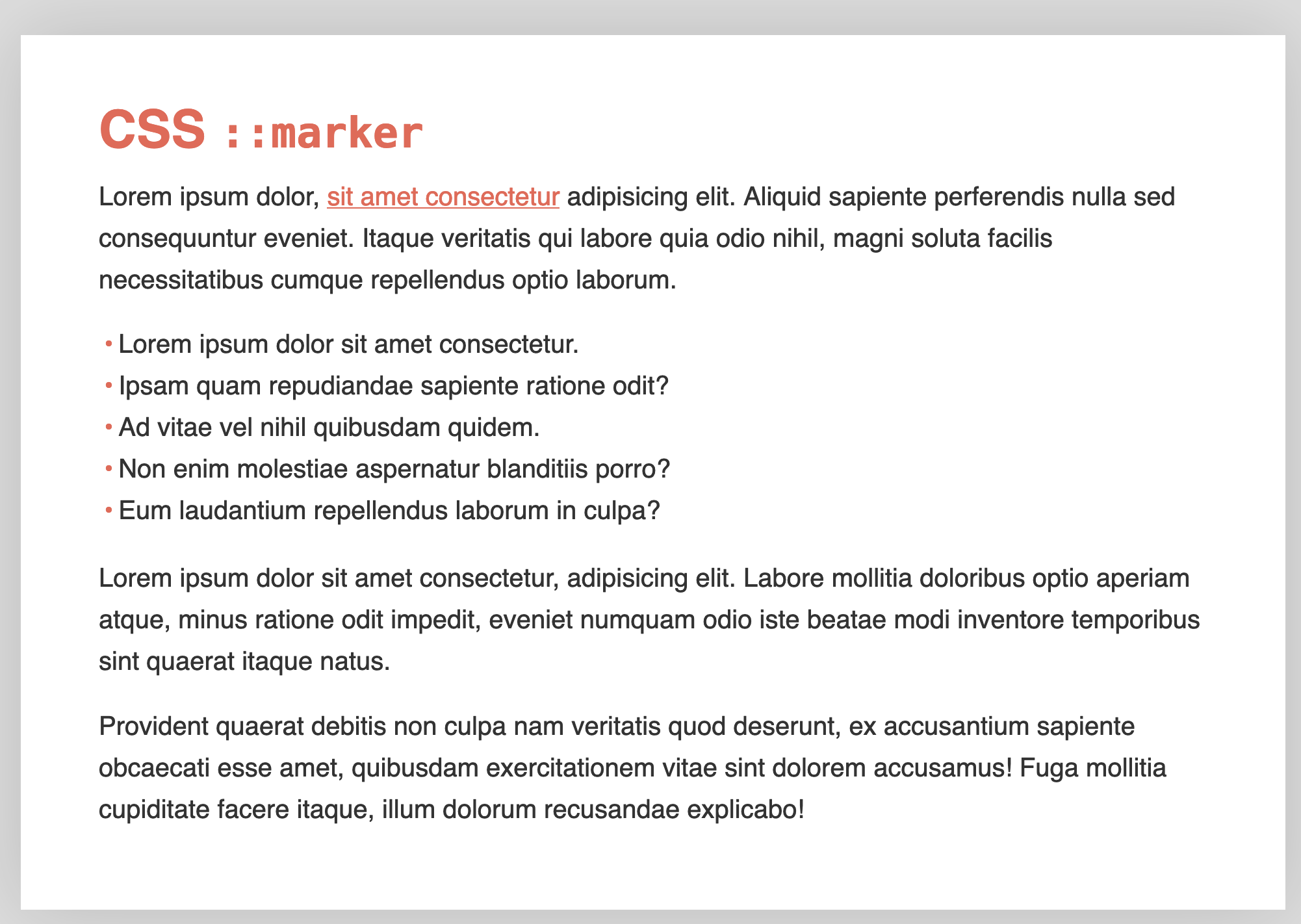 While searching the web I stumbled over this video from Kevin Powell, which works fine in modern browsers, but not in PrinceXML (see files attached: moved the list to the left of surrounding paragraphs, moved the ::marker much tighter to it's list item).