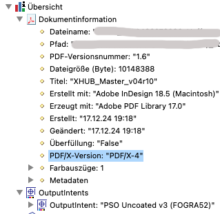 I am wondering, if this is optional, but when I export PDFs with PDF/X-4 standard from within InDesign, I get a clear hint in the document information, that the PDF is X-4 compatible (see screenshots "document-information-X4-from InDesign-1.png" and "document-information-X4-from InDesign-2.png"). With PDF/X-4 PrinceXML doesn't give any information about its PDF/X compatability in the document information.