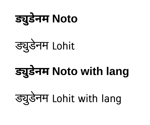 I'm using system font discovery for the fonts, so my question is: Is there any way I can ensure that Noto Sans Devanagari is handled correctly by Prince using CSS font-features or something similar (i.e. by manually defining the fonts)?