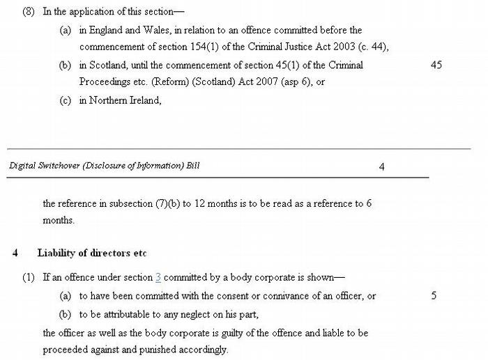 Figure 2 shows some more legislation, this time a Bill going through the UK Parliament, available from the Parliamentary website (http://www.parliament.uk/business/bills_and_legislation.cfm). This is draft legislation, which is also available in printed form, and as such needs to be referenced by Members of Parliament in a consistent way: through page breaks and line numbers. In this example, the page break for page 4 overlaps item (c) in the list.