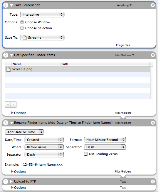 Although Automator uses AppleScript and/or Cocoa, it requires no expertise in these languages whatsoever. However, the concept would be familiar to those used to Unix pipelines: the output of the last action becomes the input of the next (though the user can optionally choose for an action to ignore the input from the previous action). Unlike Unix pipelines, however, Automator workflows are sequential: each action is completed before the next action in the workflow begins.