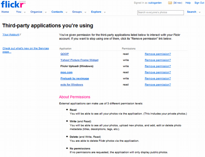 Figure 18.a. Flickr.com allows sharing to other applications and services via its comprehensive API.
