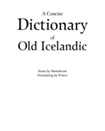Dictionaries often use multi-column layout to save space, and running headers indicate keyword entries on that page. Notice how letters are rotated and shown on tabs on the side of right pages. The fonts used in the PDF version are Satyr and Faunus, made by Monokrom. Archive.org has a scanned copy of the printed edition of this Old Icelandic dictionary from 1910.