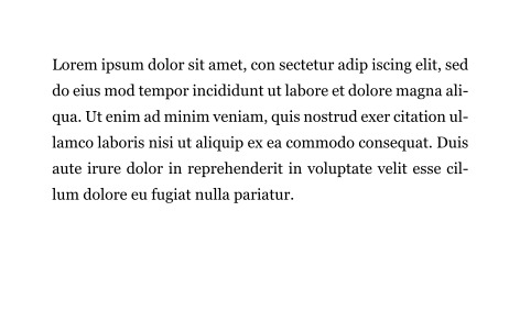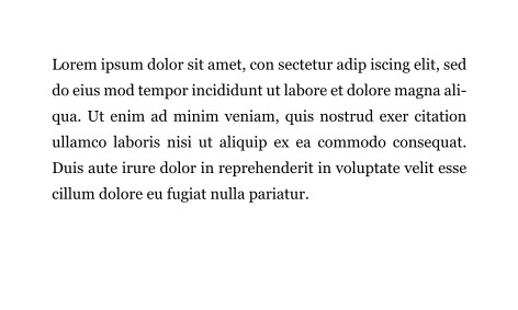 Automatic hyphenation will sometimes result in too many split words. Notice how 3 out of 5 lines are hyphenated in this otherwise normal paragraph: