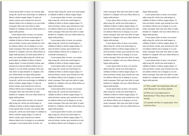 Footnotes at the bottom of columns
